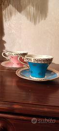 Tazze da tè e piattini in porcellana inglese Bone China color verde acqua AYNSLEY Vintage.