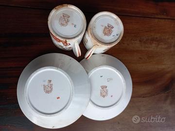 Coppia di tazzine da caffè e piattini antichi Digoin & Sarreguemines (Francia).