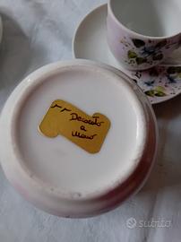 Causa inutilizzo si vende coppia di tazzine con zuccheriera in porcellana dipinte a mano.