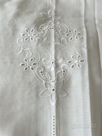 La parte inferiore e quella centrale sono impreziosite da un bordo ricamato con delicato motivo floreale, che dona un tocco di classe e romanticismo.