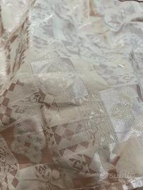 Vendo un elegante paio di tende velate/filtranti con un sottile motivo damascato/geometrico in rilievo. Il colore è un bellissimo rosa cipria tendente al salmone chiaro o all'oro rosa pallido, perfette per donare luce e un'atmosfera calda e raffinata alla tua stanza.