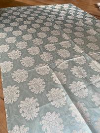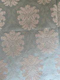 Due tende in tessuto jacquard colore verde acqua con fettuccia arricciate da, lunghe metti 1,93 e larghe metri 1,38