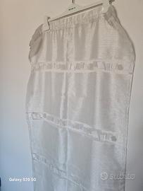 Elegante coppia di tende bianche, perfette per aggiungere un tocco di raffinatezza alla tua casa. - Design a righe trasparenti. - Finitura con passanti per un facile montaggio. In foto solo una ma vendo la coppia. Misure Larghezza 62 cm Lunghezza 142 cm