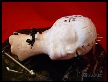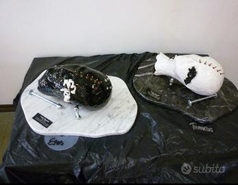 Teste in ceramica doppia cottura e smaltate su base di marmo. Titolo dell’opera EROS E TANATOS.