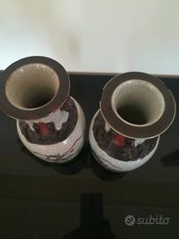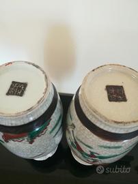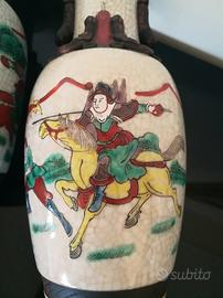 Coppia di vasi cinesi antichi in porcellana smaltata e dipinta a
