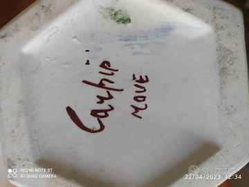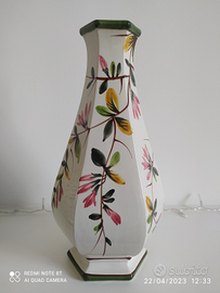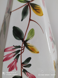 Coppia di vasi con fiori in ceramica dipinti a mano