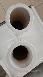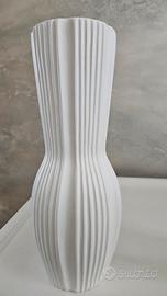 Vendo splendida coppia di vasi decorativi in ceramica bianca, caratterizzati da un raffinato design a coste verticali e linee sinuose.