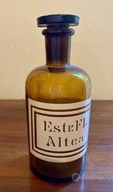 Coppia di antichi vasi da farmacia in vetro arancione, completamente lavorati e rifiniti a mano, epoca fine del XIX sec., usati con normali segni del tempo, altezza 21 x diametro 32,5 il grande, con la scritta Lisoformio I°, altezza 15 x diametro 20 il più piccolo con la scritta Estratto Floreale Altea. 120 euro la coppia.
