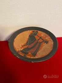 Coppia di vasi realizzati a mano da vasaio in località Tuscania/Lazio con figure di epoca Etrusca dipinte a mano e antichizzate.