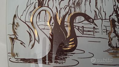 Coppia di vetri originali anni'50, di raffinato design dipinto a mano, con finiture dorate.