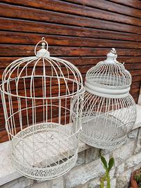 VENDO COPPIA DI VOLIERE DECORATIVE ORNAMENTALI D'ARREDO IN FERRO/LAMIERA DA RINFRESCARE (DA EFFETTUARE PICCOLI RITOCCHI)