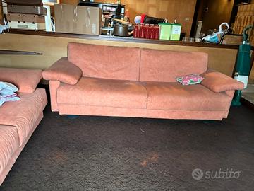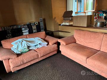 Vendo bellissima coppia di divani, uno da due posti abbondanti e uno da tre posti abbondanti, causa rinnovo arredamento. I divani sono stati recentemente rifoderati con un tessuto di alta qualità in una calda tonalità salmone/arancio, che dona molta luminosità all'ambiente. Grazie al rifacimento totale del rivestimento, si presentano in perfetto stato estetico e igienico, senza segni di usura, macchie o graffi. Anche le imbottiture sono ancora molto sostenute e confortevoli. Dettagli: Stato: Pari al nuovo (appena rifoderati). Configurazione: 1 divano 3 posti + 1 divano 2 posti. Colore: Arancio / Salmone. Vendita: Solo in coppia (non vendibili separatamente). Prezzo per la coppia: 850 € Zona per il ritiro: Brugherio (MB). Per qualsiasi informazione, non esitate a contattarmi.