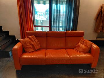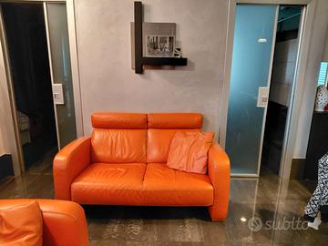 Vendo coppia divani (3 posti e 2 posti) come nuovi in pelle primo fiore di alta qualità color arancione
