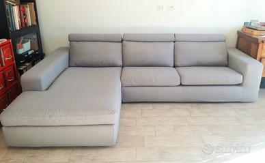 Coppia divani di Poltrone e sofà, realizzati a mano in Italia. Uno è un divanoletto matrimoniale, l'altro con un'isola che si può usare come letto singolo per gli ospiti occasionali. Si possono unire con 2 ganci come unico grande divano angolare o si possono usare separati. Tutta la cuscineria (i 3 schienali e i 3 cuscini) è in piuma d'oca.