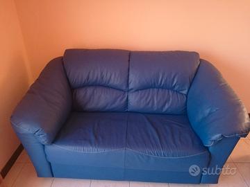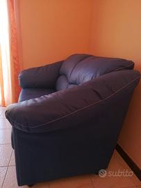 Coppia divani blu 3 posti + 2 posti Divani imbottiti in similpelle Presenti piccoli segni di usura. Condizioni generali buone, visionabili di presenza.