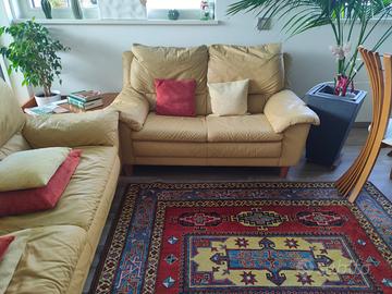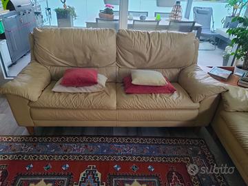 Vendo coppia di divani in pelle posti 3+2 in buono stato, colore come da foto, mis. m. 2,00L X 0,90P x 0,90H quello a 3 posti e 1,60L X 0,90P x 0,90H quello a 2 posti.