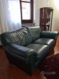 Vendo coppia divani in pelle verde scuro, 2 posti, usati ma ben conservati, marchio Divani & Divani.