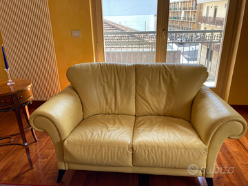 Causa trasloco vendesi coppia divani in pelle gialla pari al nuovo (tre posti e due posti). Prezzo per la coppia di divani ? 600. Vendo solo in coppia . Ritiro a carico acquirente.