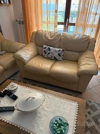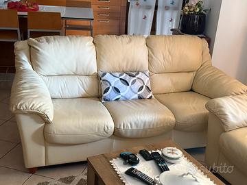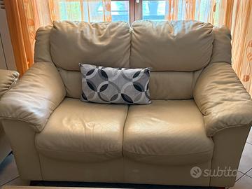 Entrambi in vera pelle, comodi e resistenti, con linee eleganti che si adattano facilmente a diversi stili di arredamento. Condizioni buone, senza rotture né cedimenti.