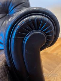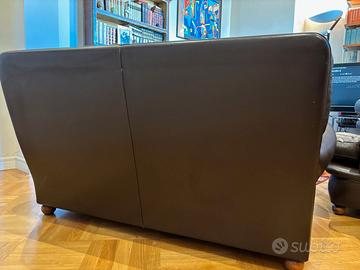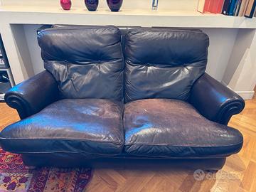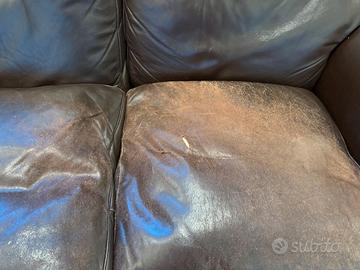 Coppia di divani Poltrona Frau anni ‘80 in pelle colore marrone tasta di moro. La pelle dei cuscini di seduta è usurata: ciascun divano ha la pelle del cuscino a destra con tagli come in foto. I cuscini di schienale sono in buone condizioni . Il Divano “1” ha la cerniera del cuscino di destra rotta. Tutte le altre parti del divano (schienale, fianchi e base) sono in condizioni molto buone.