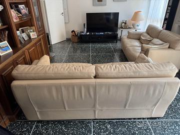 coppia divani in pelle panna Roche Bobois con cuscini in piuma d'oca.. 1 divano 2 posti 180x 104 cm altezza 80 cm 1 dicano letto 3 posti 190x 106cm altezza 80 cm, con doghe in legno e materasso in gommapiuma. tutti i cuscini sono fissati con cerniera lampo. sono presenti graffi e scoloriture, compatibili con l'usura,ma la struttura è perfetta. €1.700 il 2 posti € 1.800 il 3 posti se acquistati insieme € 3.000 la coppia. solo ritiro, no spedizione