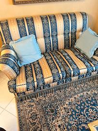 Coppia di divani in raso blu con strisce giallo oro in buone condizioni molto eleganti in stile anni 80/90 Trasporto a carico dell acquirente