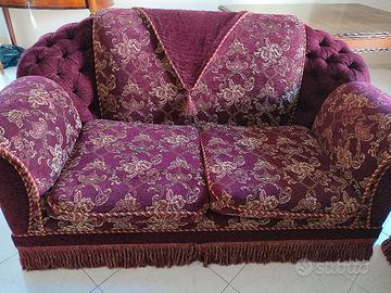 Vendo coppia di divani in tessuto colore vinaccia e oro, modello classico, imbottitura in ottime condizioni, rifiniture in ottime condizioni, nessun difetto, nessuna macchia, schienale in ottime condizioni. Le condizioni sono davvero ottime, tenuto in maniera maniacale. Vendo per passare ad un modello moderno