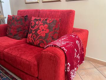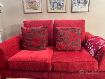 Vendo due divani da salotto in velluto rosso, eleganti e confortevoli.
