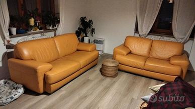 Vendo coppia di splendidi divani in vera pelle di alta qualità, color cuoio/senape caldo, perfetti per dare un tocco di stile e personalità al tuo soggiorno.