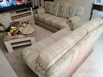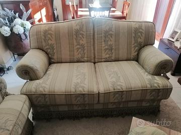 Vendesi coppia divano tre posti e due posti usati in buone condizioni, colore verde e beige damascato Ritiro e trasporto a carico del compratore