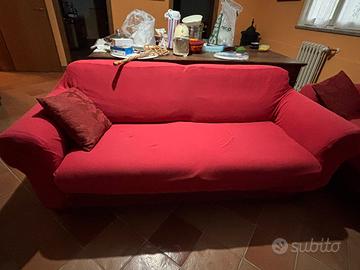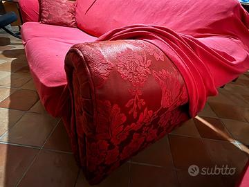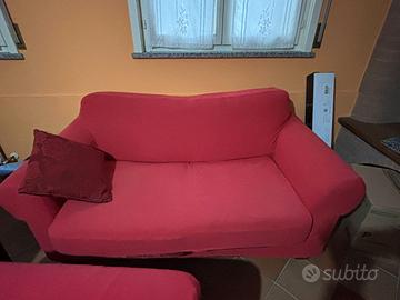 Vendo coppia di divani 2 e 3 posti in tessuto rosso non sfoderabile, includo copridivano rossi per ciascuno. Vendo in blocco a 100 euro. Ritiro al piano terra.