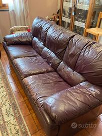 Vendo due divani da 2 e 3 posti in pelle. Divano 2 posto buon stato Divano 3 posti con una parte piu rovinata