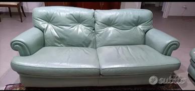 Divani verde salvia vintage, usati con struttura in perfette condizioni, la pelle delle sedute hanno l'usura del tempo vissuto.