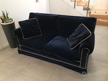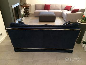 Vendo coppia divani artigianali di ottima fattura con imbottitura in piuma e rivestimento in velluto blu.