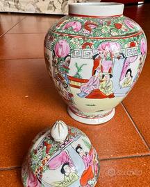Due vasi in porcellana cinese, nello specifico un esemplare di Canton o in stile Canton. Dipinti a mano.