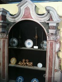 Bellissima coppia di edicole lignee venete 1700 condizioni ottime, restaurate,di grande impatto visivo. Dimensioni lunghezza 1.870 altezza 2.550 larghezza 550. Prezzo totale 3.500 euro Visibili ad Ivrea To