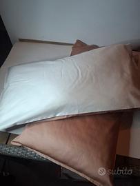 Coppia federe in raso di cotone finitura silking bicolor. Color rosa antico/avorio.