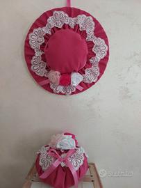 Stupenda coppia per arredare casa romantica e unica , tutto fatto a mano arricchito con pizzo, fiocchi e fiori 💐 diametro cappello 32 cm