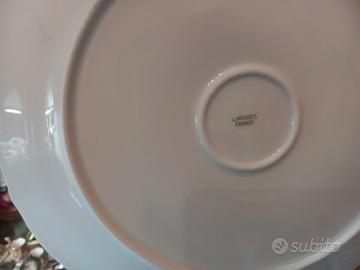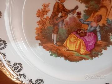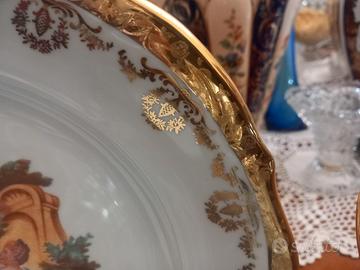 coppia di piatti grandi vintage 900' firmati fragonard limoges france misurano 33 centimetri di diametro con bordi smerlettati rifiniture oro lucido e satinato