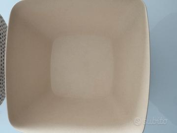Coppia di insalatiere in melamina 24x24x12 cm a pois blu, leggere e resistenti, per insalate, pasta fredda, frutta o come ciotole da servizio.