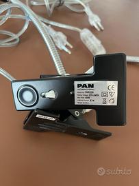 Vendo coppia lampade da scrivania (o mensola o letto) con pinza, PAN International, voltaggio 220-240, potenza max 40W. Hanno braccio flessibile lungo 25 cm più diffusore orientabile da 11,5 cm e dono complete di cavo di alimentazione e interruttore.