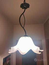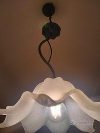 Coppia lampadari artigianali ferro battuto e vetro