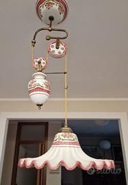 coppia lampadari Ceramiche artistiche Lampadario in ceramica con carrucola decorazione di Bassano più lampadario semplice abbinato. come nuovi