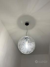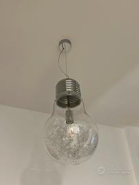 Vendo per cambio arredo splendida coppia di lampadari a sospensione firmati Ideal Lux, acquistati solo due anni fa e mantenuti in condizioni impeccabili, pari al nuovo. I due pezzi, pur avendo forme diverse, creano un set perfetto grazie alla stessa finitura e alla larghezza coordinata: LUCE MAX SP1 BIG (Forma a Lampadina): Un pezzo iconico e scenografico. Il corpo in vetro soffiato è alto ben 54 cm con un diametro di 30 cm. MAPA MAX SP1 D30 (Forma a Sfera): Elegante e minimale, con un diametro di 30 cm. Caratteristiche comuni: Entrambi i diffusori in vetro trasparente racchiudono una decorazione interna in filo di alluminio, che rifrange la luce creando un'atmosfera calda e moderna senza abbagliare. Materiali di Qualità: Montatura in metallo cromato e cavi in acciaio a lunghezza regolabile (ideali per soffitti di qualsiasi altezza). Condizioni: Vetri brillanti, senza graffi o segni di usura. Cavi e componenti elettriche perfette. Prezzi: Set completo (Coppia): 120 (Soluzione consigliata per un arredo coordinato). Singolo Luce Max Big: 80 Singolo Mapa Max D30: 60 (Prezzo del nuovo per la coppia: oltre 270) Note: Disponibile per visione e ritiro a mano (data la delicatezza del vetro).