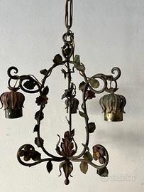Coppia di lampadari in ferro battuto, finemente lavorati da artigiani di fine Ottocento, riadattate alla luce elettrica subito dopo la Prima Guerra Mondiale. Uno ha tre braccia con porta lampadine a forma di candela e misura cm 45 di diametro per 85 cm di catena. L'altro, a forma ovale e con foglioline saldate ovunque, ha tre porta lampadine a forma di campanellini, un diametro di 30 cm e una catena di 85 cm. Si trovano entrambi a Milano città, in zona Navigli. Il ritiro e il trasporto saranno a carico dell'acquirente: non si fanno spedizioni e non si accettano bonifici. Si vende anche pezzo singolo a 85 euro cadauno. Prezzi leggermente trattabili.