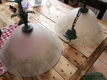 Coppia di lampadari in vetro lavorato . Per info o accordi telefonare al 3403177953 dopo le 16.00. Non spedisco