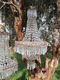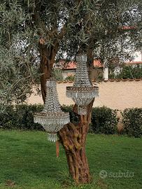 Coppia di lampadari con pendagli a sei luci anche da uso esterno come decori per eventi. Disponibile a spedizioni a carico dell'acquirente.