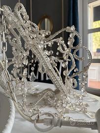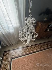 Coppia lampadari floreale stile M. antonietta pair Chandeliers H 40 cm circa (catena esclusa) L 30 cm circa, struttura in ferro bianco.