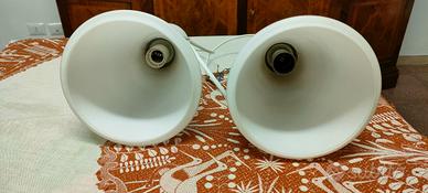 coppia di lampadari in vetro opalino anni 60/70,lievi segni del tempo ma in ottime condizioni.