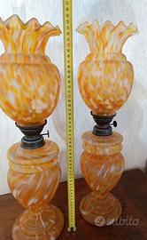Coppia Lampade a Petrolio Vintage Vetro Satinato